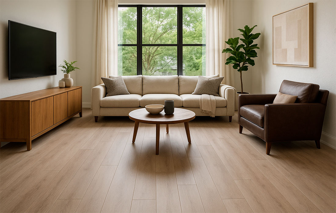 • El piso laminado combina elegancia y precio accesible, con diseños que imitan la madera natural en distintos estilos y colores.